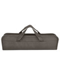 - Case features zipper closure, front open pocket, and polyester web handles (measuring approx 6.5"l x 1"w)